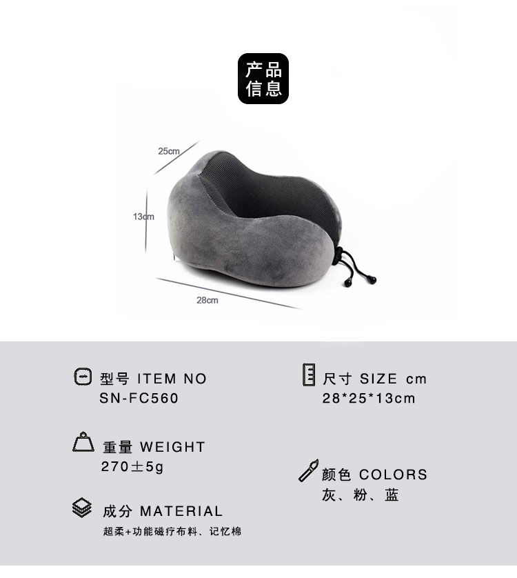 [品牌]:SAIEN賽恩 [産品名稱]:新款束口袋U型枕成人(rén) 便攜式記憶枕多(duō)功能(néng)±↔φ枕頭 [産品尺寸]:26x24x13cm [産品型号]:SN-FC562 [枕套材質]:氨綸面料 [顔色]:灰、粉、藍(lán) [适用(yòng)季節]:春夏秋冬 [産品材質]:氨綸、記憶棉